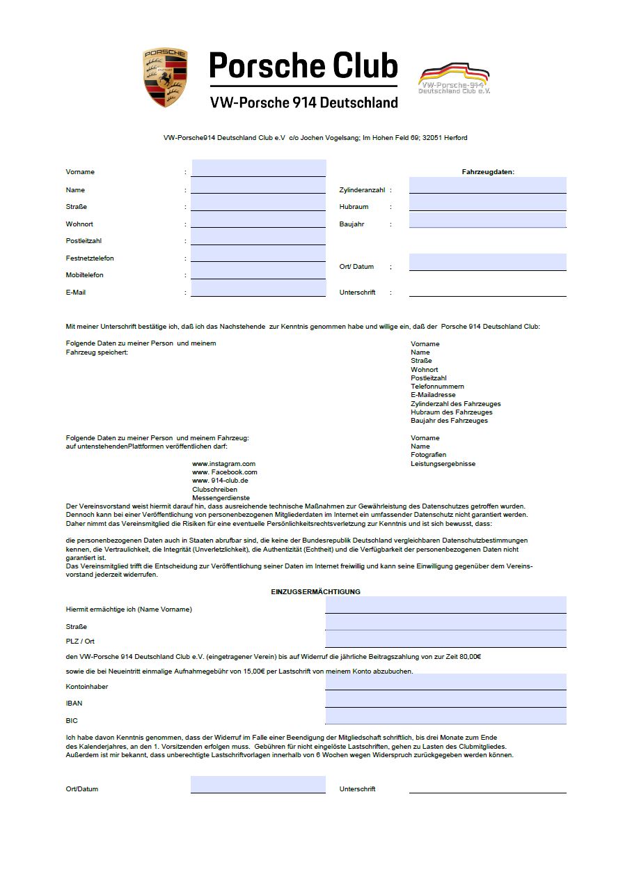 Bei Bedarf ausdrucken, ausfüllen und per Post, per Mail oder auf anderem Weg dem 1. Vorsitzenden unseres Clubs zukommen lassen.